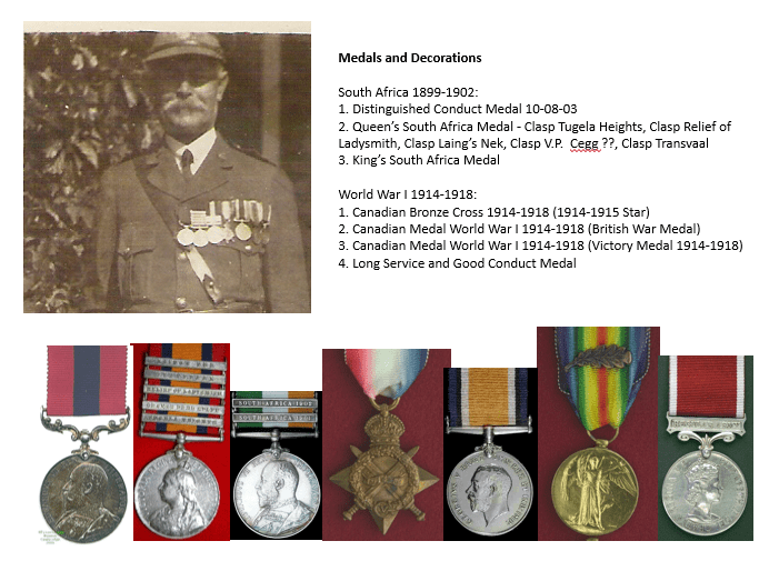 The next ten years took the new family around the globe. It was a good life, if lived in a barracks, and allowed Minnie the luxury of a servant. William transferred to the Lancashire Fusiliers and with that regiment was stationed in India and Pakistan, where his second daughter was born, in Egypt, and in Malta where his third daughter arrived, before heading back to England. It was, however, in South Africa that he distinguished himself. The Second “Boer War” was fought from October 1899 to May 1902. William saw combat at the Battle of Spion Kop and took part in the relief of the siege at Ladysmith. He was promoted to Quarter Master Sergeant in 1899 and gazetted in 1903 with a Distinguished Conduct Medal (DCM) for “distinguished, gallant and good conduct in the field”. It is the second highest award given to non- officer ranks, eclipsed only by the Victoria Cross (VC).
