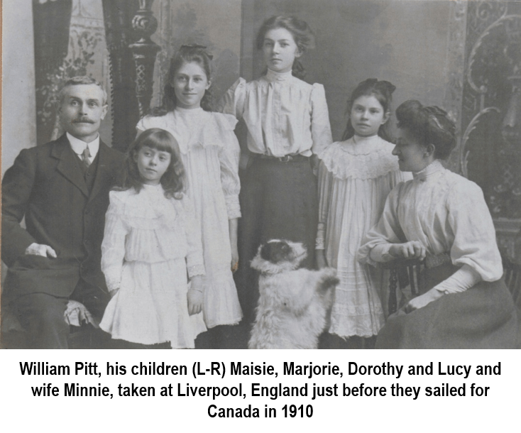 Once William was home from South Africa, the Pitt family transferred to Ireland, where William and Minnie’s only two sons were born. Sadly, neither boy lived past the age of three. In 1907, William was discharged after 21 years in the British Army, and perhaps that was when he started thinking of emigrating to Canada, to a new life and better opportunities. In 1910, 41-year-old William, 43-year-old Minnie and their daughters, Dorothy, 16, Eva, 15, Lucie, 11, and Maisie, 7 set sail for New Brunswick. William was going to become a farmer.