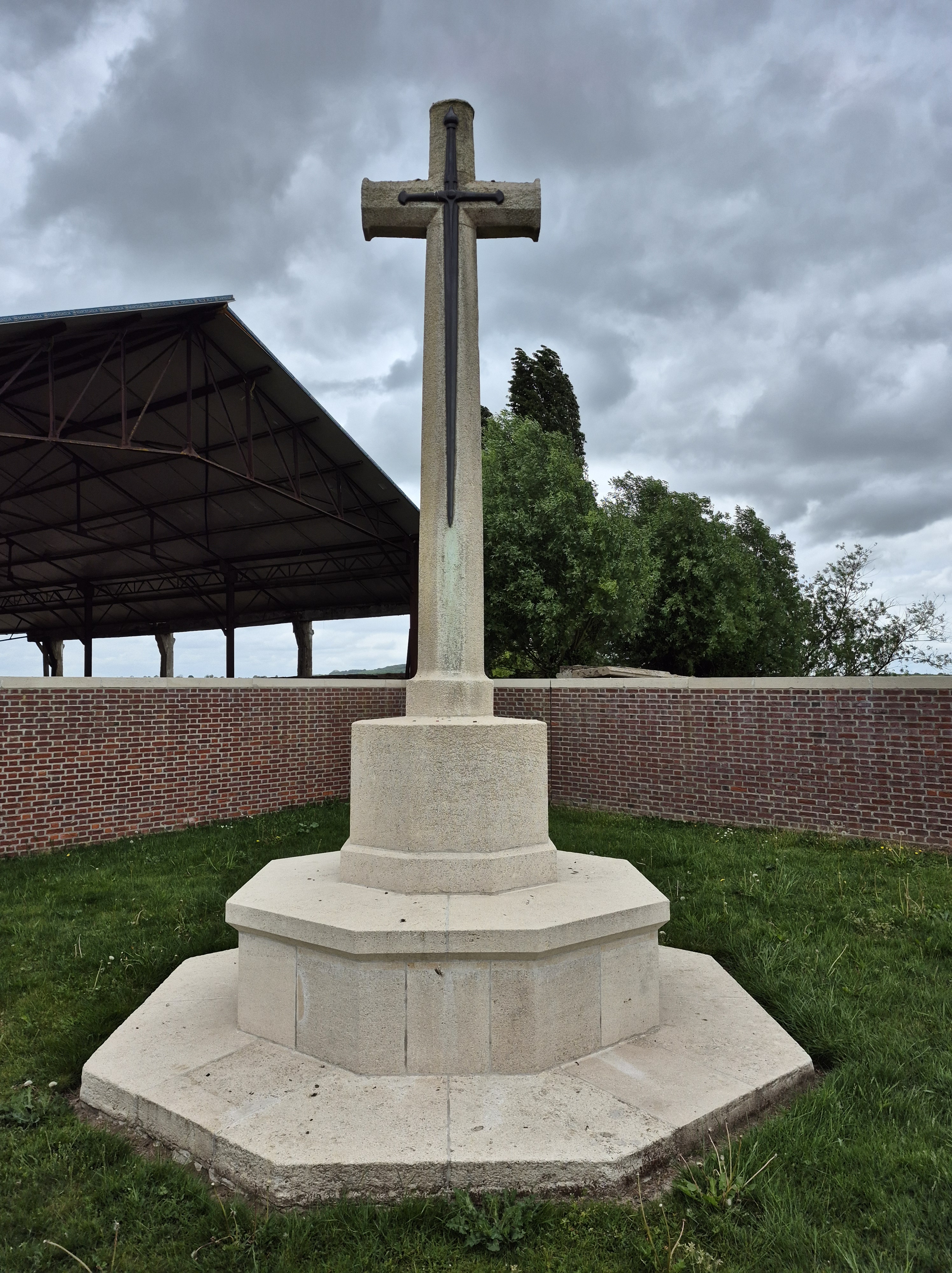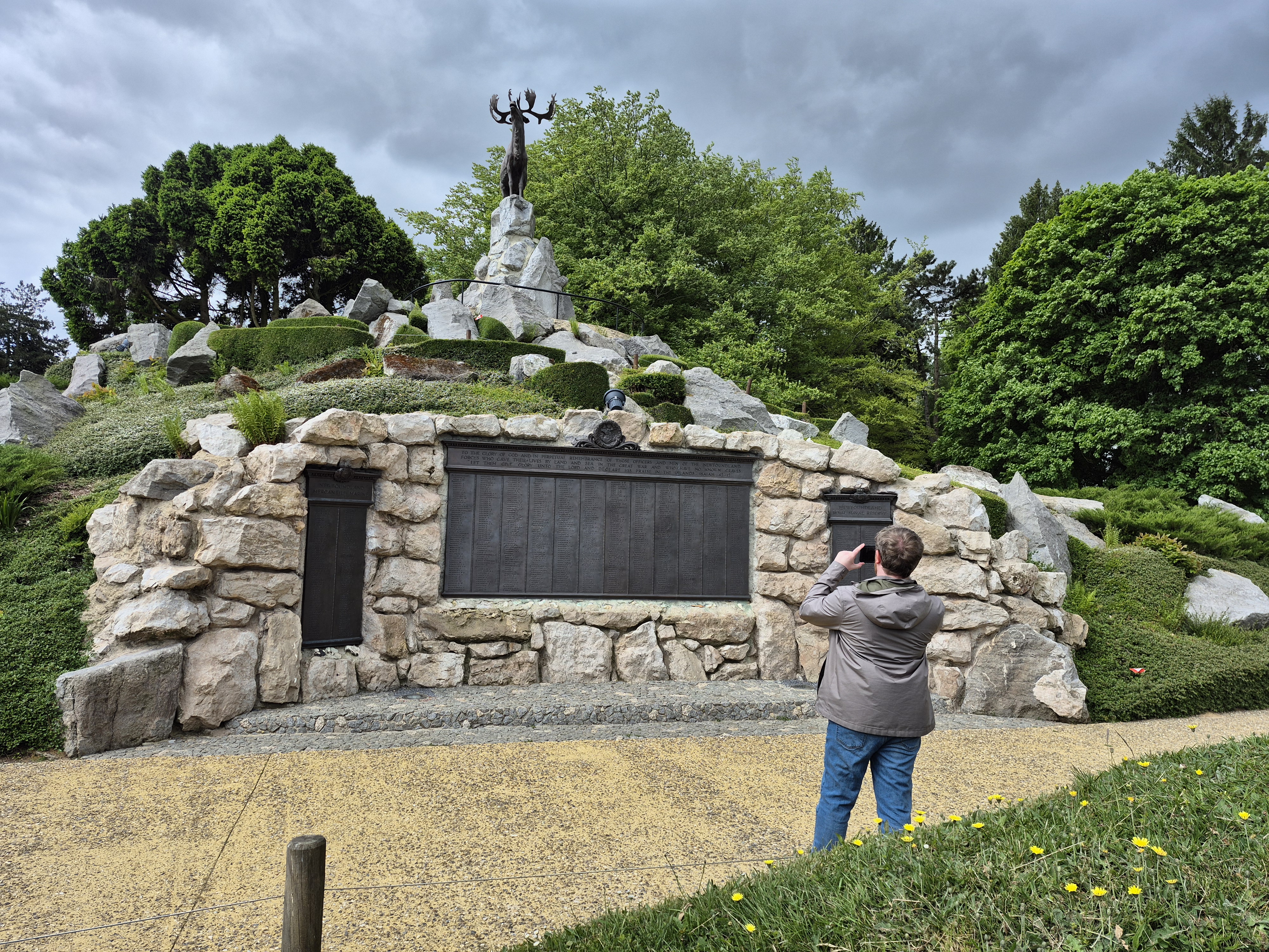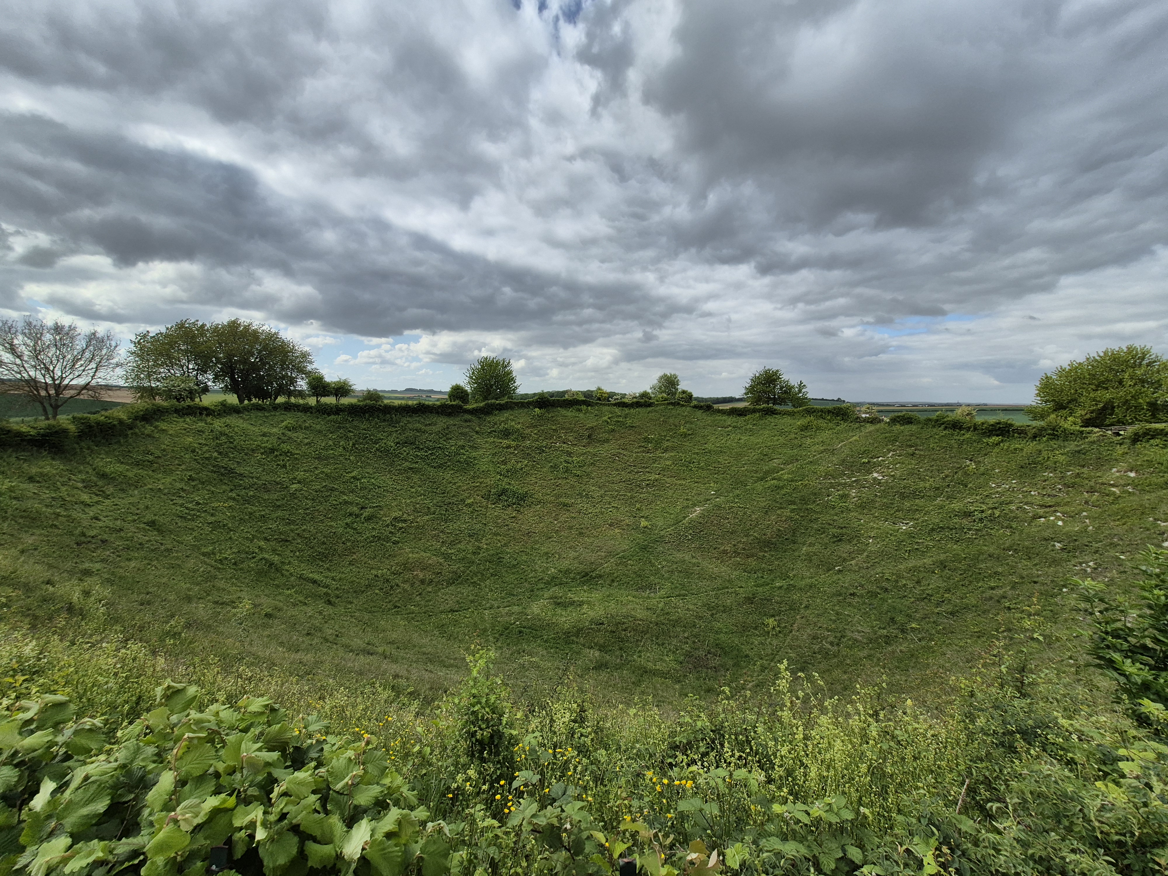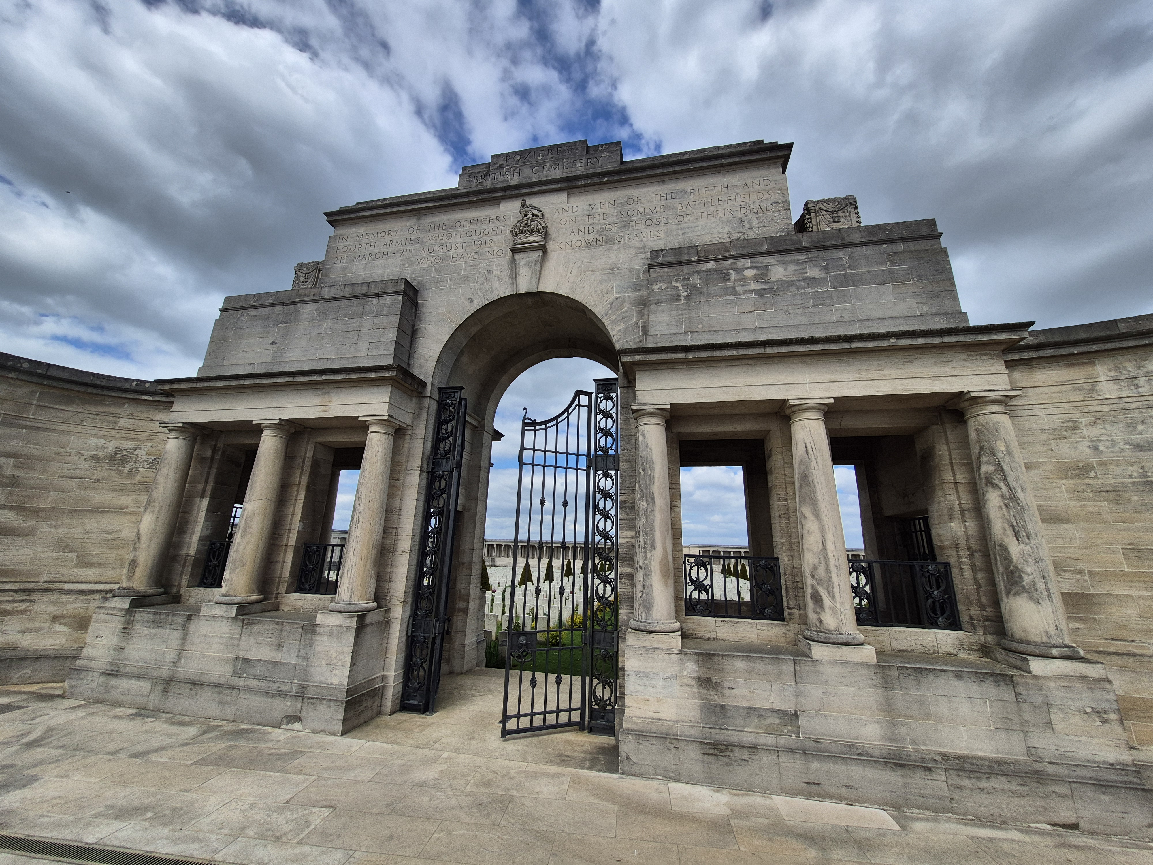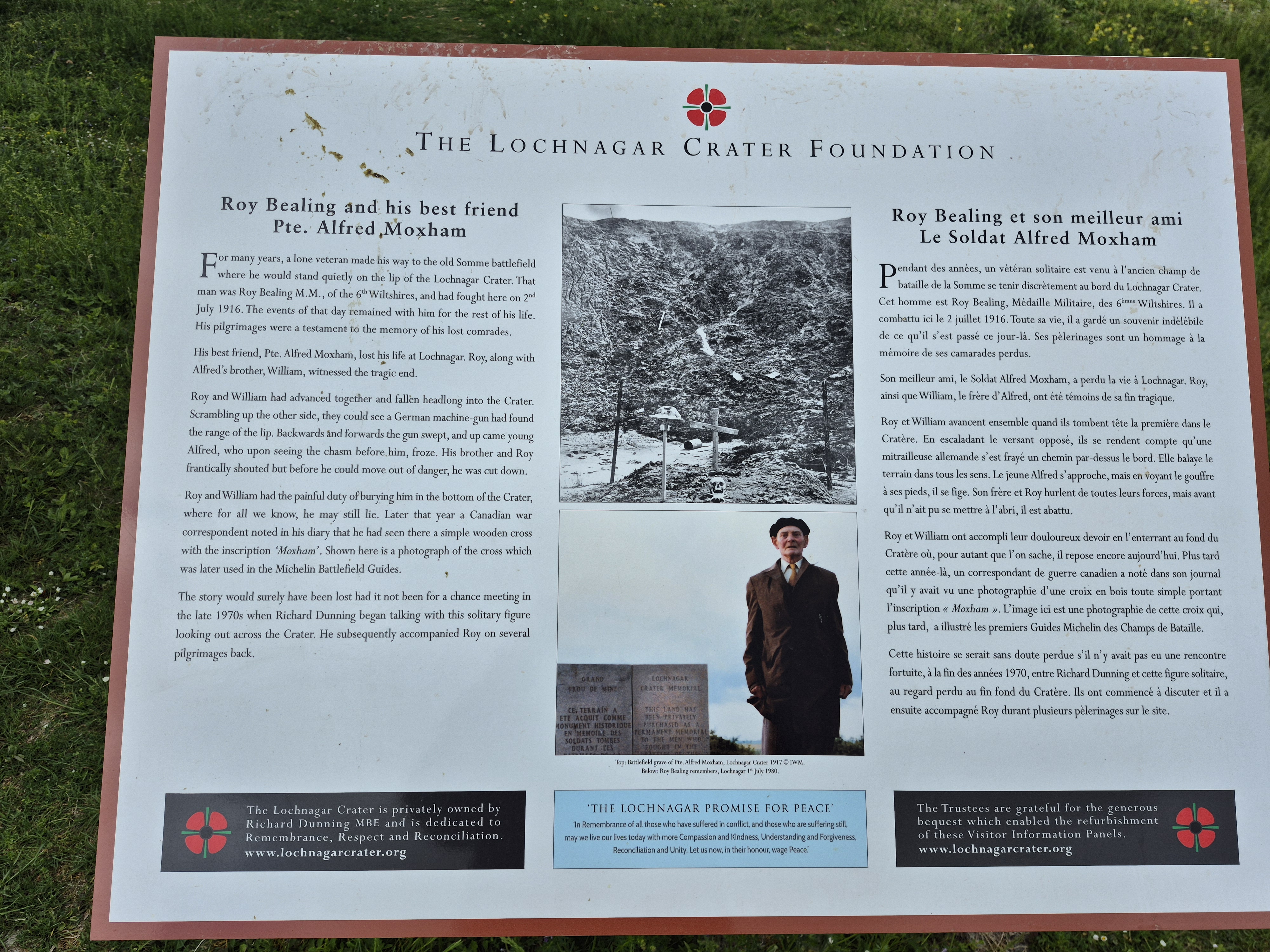 It was such a short trip and we packed a great deal into those six days. I completely forgot to write about the sites we visited in France on the Monday, day three. Leaving Ypres early, we headed south to the Somme. There we visited Beaumont-Hamel, Lochnagar Crater, the Canadian Monument in Courcelette, The British Tank Division Monument, the Windmill and finally drove to Cambrai to visit a friend’s great-uncle. In a tiny, out of the way cemetery, along with the Canadian casualties of the 100 Days/Canal du Nord fighting, there were the graves of a RCAF Lancaster bomber crew, lost in a bombing raid over Cambrai in 1944.