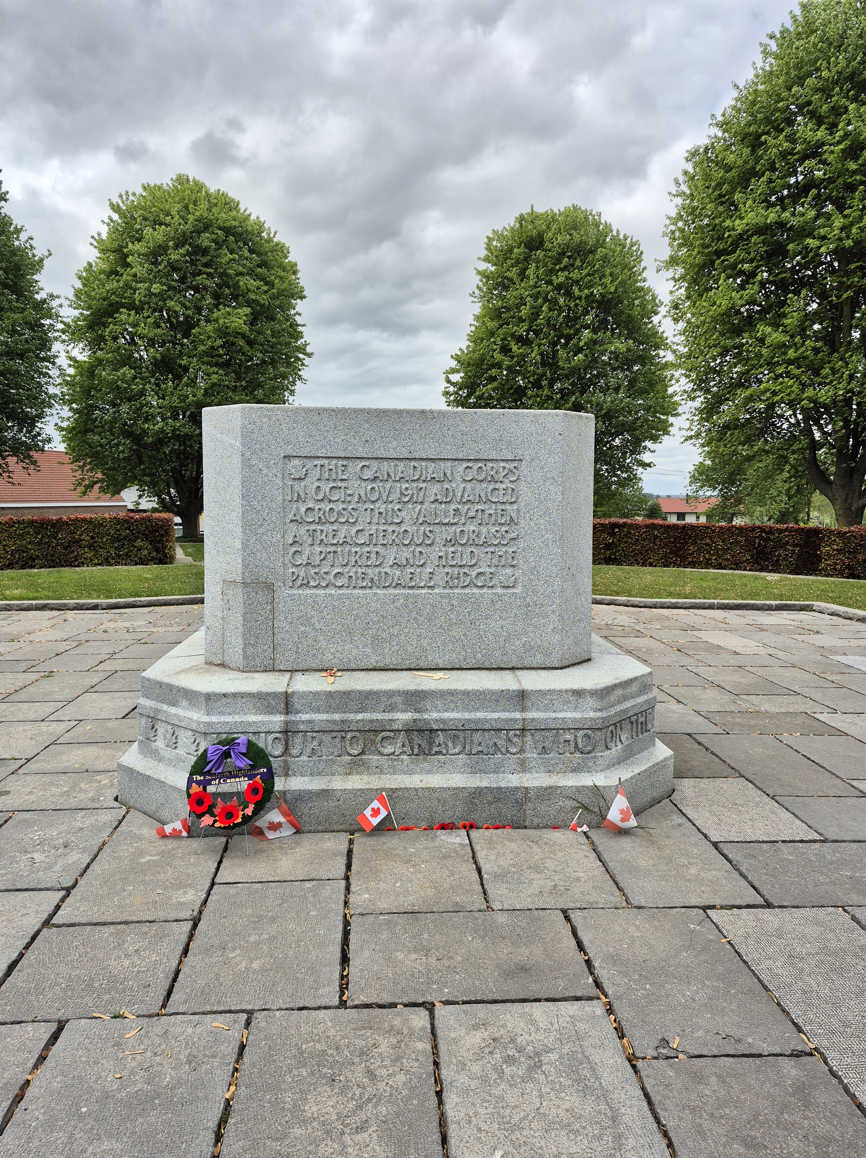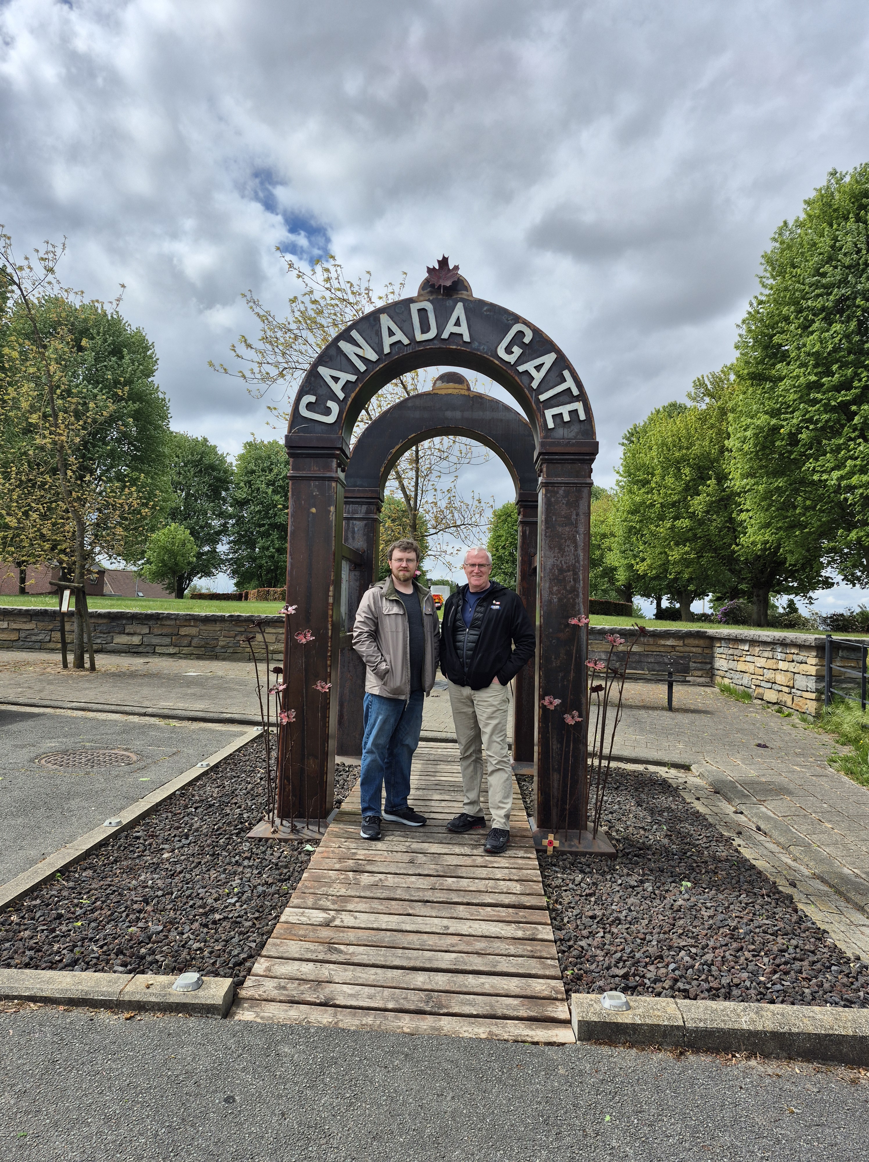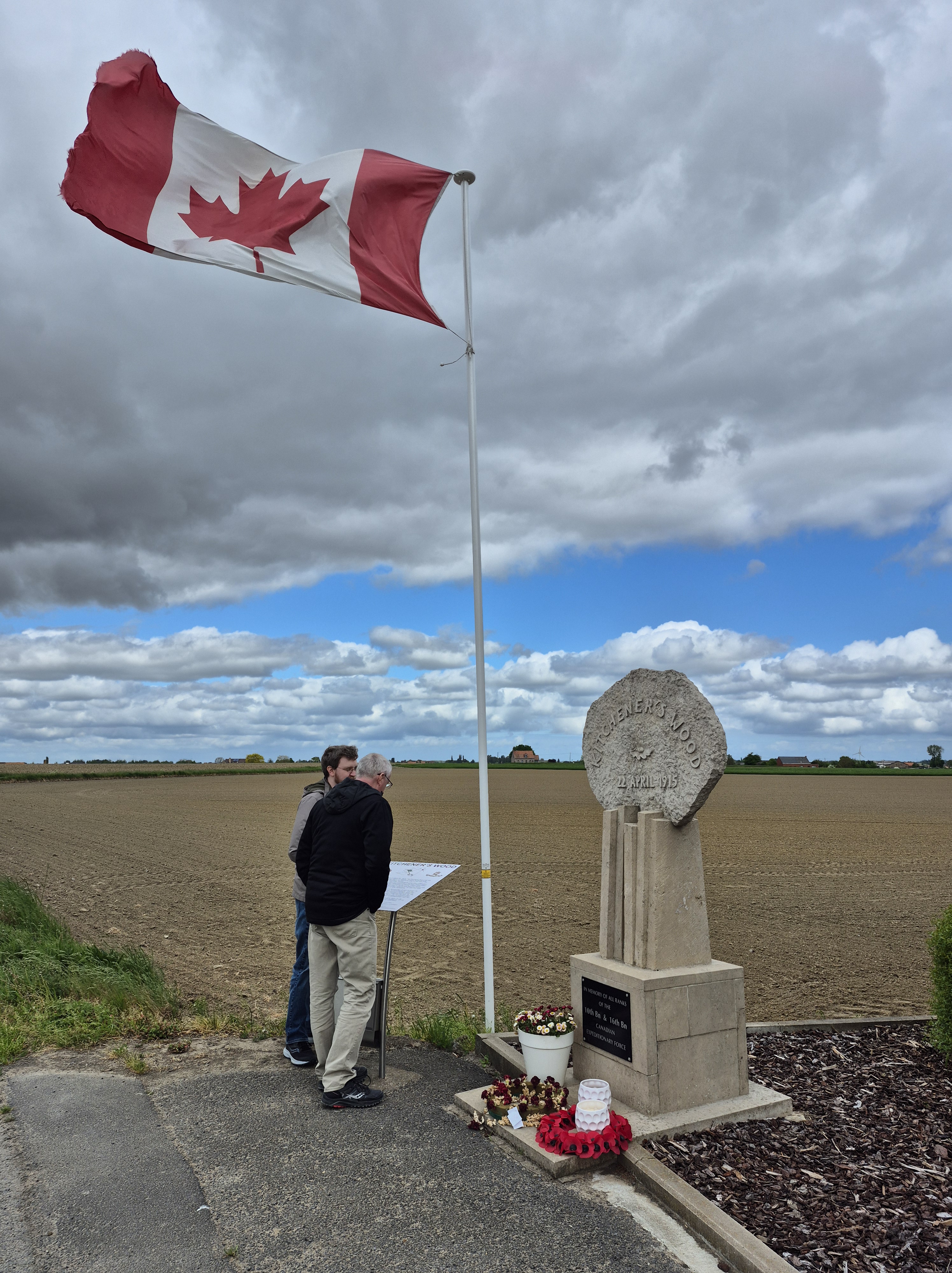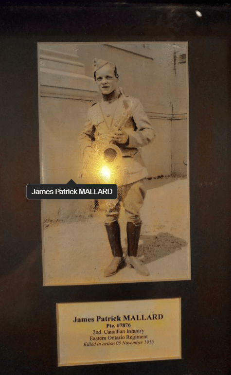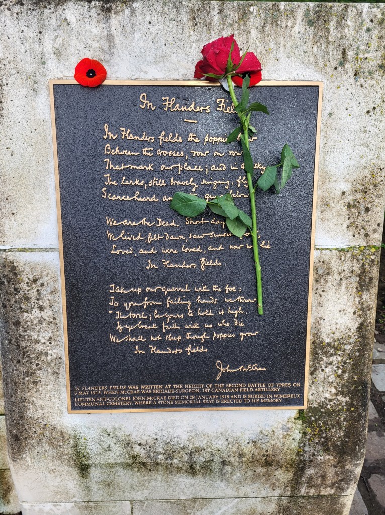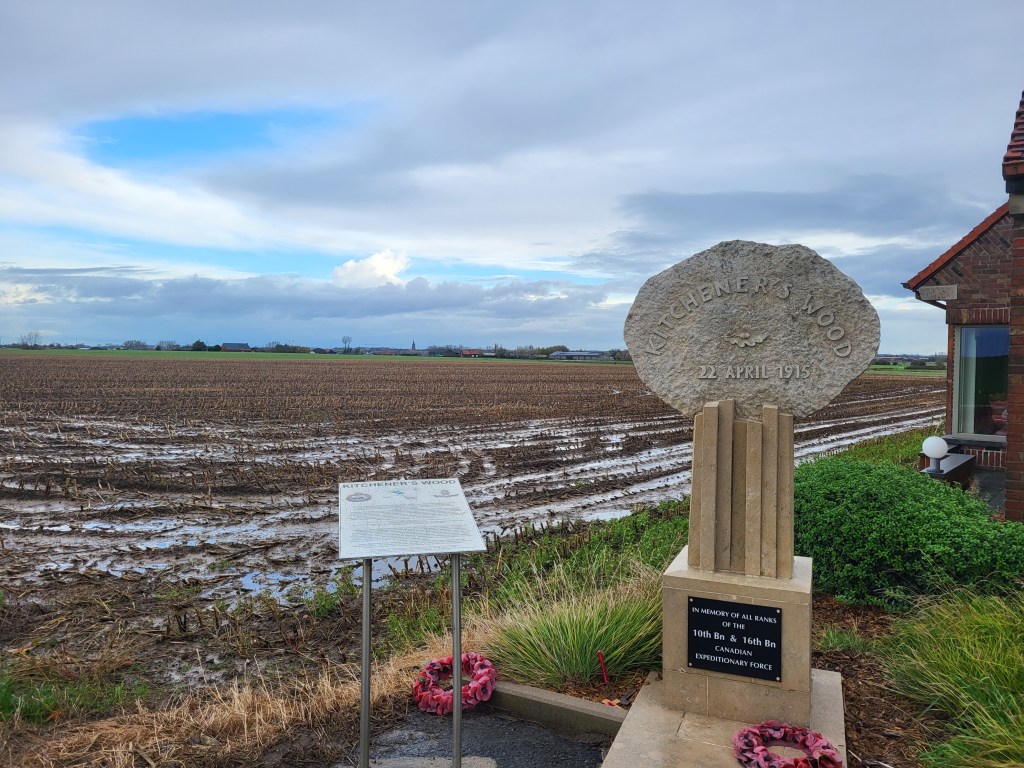 Here is where I come to the story of how my travel plans changed. Earlier this year a police officer reached out to me from Ontario. He and his pipe band were going to be in Ypres and Vimy and they wanted to do a ceremony at Jim’s grave. At first, I was a little skeptical. Was this legit or some elaborate scam? Over the course of a few messages, then email, I consented to call the officer, Special Constable John Guy of the Halton Regional Police Services. He had read my book a few years ago, and Jim’s story affected him deeply. He and his family had been to Belgium in 2023 and visited Jim’s grave. When he knew his pipe band was to go to Europe, he immediately reached out to me to see if I was okay with the idea – heck, yes! It was then he met with the rest of the band members, got permission from his Chief and it all fell into place. The entire band got copies of Somewhere in Flanders so they could “meet” Jim as well, and I made my travel plans to meet them there. It was all SO much more than I had anticipated. The entire band paraded down the lane that Jim would have been carried to his final resting place. They had a piper, a singer, a bugler, speeches and a wreath laying. It was emotional, beautiful, a loving tribute to Jim and his fallen comrades at RE Farm. It will be one of my most treasured moment!