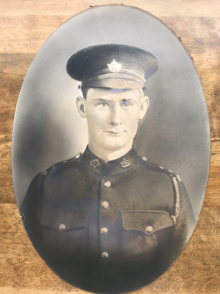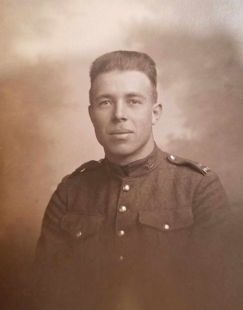 Will was 20, Steve two years younger, the year the war broke out. Steve enlisted in the 25th Battalion out of Halifax, NS. At nearly 5’9”, he was taller by far than the average (around 5’6”), a muscular 180 pounds, and fearless. Will told a story of Steve leaving two military police officers on the ground when they tried to prevent him popping home to see his mother before shipping out to Europe.