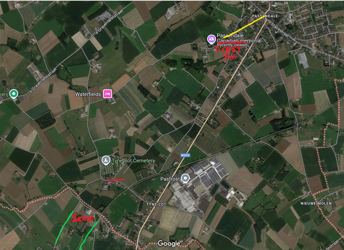 In the afternoon, we went to Mount Sorrel, near Sanctuary Wood, and to Mt. Kemmel. It is no wonder these places were sought after as they offered great vantage points over Ypres and the Messine Ridge respectively.