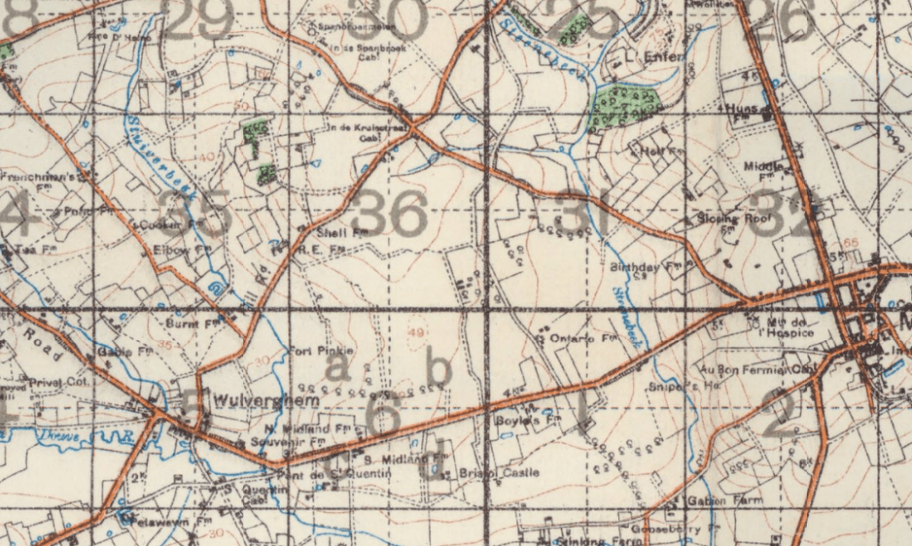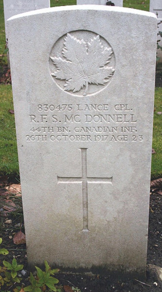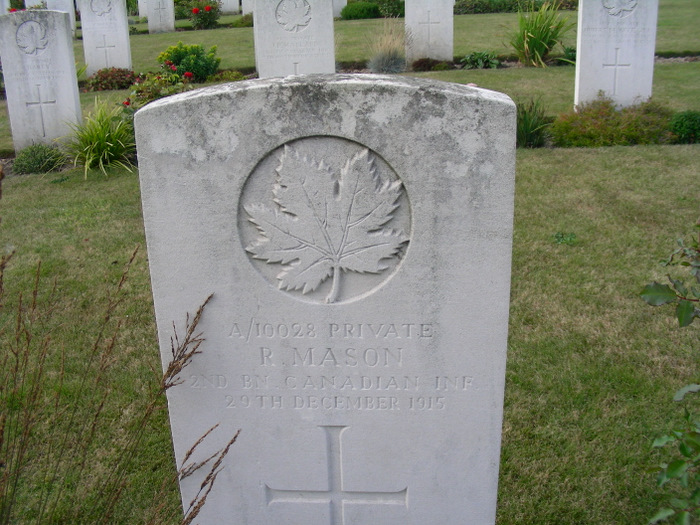 February of 1916 was a quiet month in the trenches in that low rolling countryside south of Ypres, near Mount Kemmel and Messine Ridge. The days alternated bright sun and rain, and late in the month there was snow. Jim described it as huge flakes like he’d seen at home in Nova Scotia. I’ve seen that kind of snow, flakes softly drifting down, no wind, the world hushed and beautiful. Those days were noted as quiet, even “very” quiet in the battalion war diary, with often “nothing of note” but the occasional desultory shells lobbed over by the enemy. But there was something of note that happened. Seven men died, their war ended swiftly and without any glory. I’ve told the stories of Harry and Henry, of James Maxwell and, of course, James Johnstone. There was a failed trench raid that cost the life of one of the most popular officers in the battalion (Captain George Richardson who is buried in Bailleul and is written about in my book Somewhere in Flanders). Here is the story of the last three who lie with their comrades in R.E. Farm cemetery.