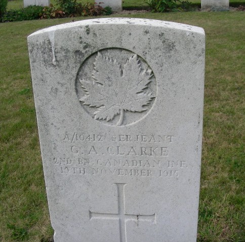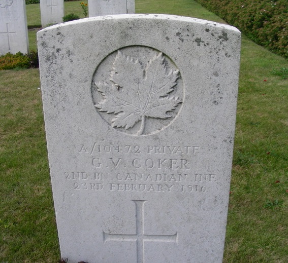 George had joined the 38th Battalion, and of course, was transferred to the 12th Reserve Battalion on arrival in England. Undoubtedly, he took the opportunity to visit his family in London. In late August 1915, George was transferred to the 2nd Battalion. From this time there is nothing noteworthy on his record. He did his job quietly, willingly and without injury; he was an old hand who knew how to obey orders. On the cold, clear, quiet February day – exactly one year to the day that he’d signed his attestation papers – George was killed. He was laid to rest in plot III.B.13. Theresa never remarried.
