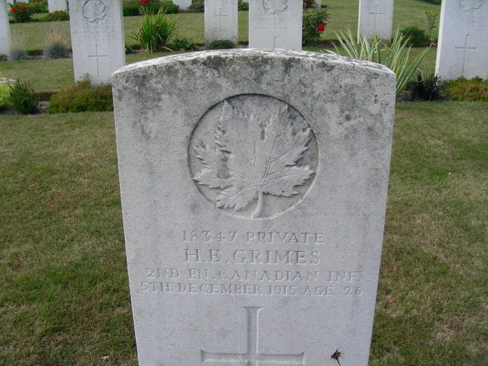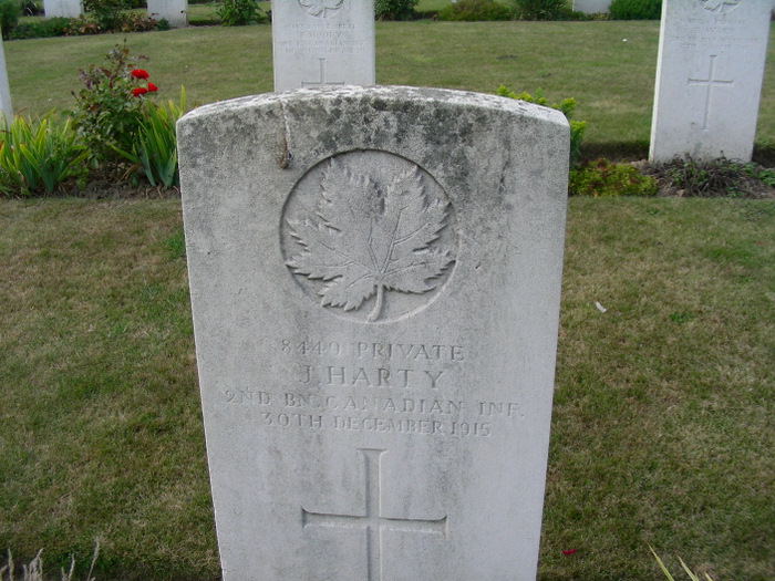 Arguably, Canadians pioneered and perfected the art of trench raiding. Trench raiding was a nighttime operation of stealthily creeping across no-man’s-land, dashing into the enemy trenches to grab prisoners and therefore information valuable to HQ. Raids were carried out by volunteers, and were nasty, brutish events, the weapons carried into them often makeshift and silently deployable. On the night of 8 February 1916, one such “stunt” as Jim Johnstone called it, was planned. Jim had volunteered, and so it seems had Harry. In command of this raid was Captain George Richardson, eventually a Canadian Hockey Hall of Famer, and whose story I wrote about in Somewhere in Flanders. Richardson would not survive this raid, and neither would Harry. The shelling meant to break the wire failed and merely alerted the Germans who were waiting. The advance party, of which Harry was likely a part, came under heavy fire; Richardson was badly shot up trying to come to their rescue. The war diary fails to remark on this terrible cost, merely saying “scheme postponed”. While Richardson survived long enough to be evacuated to a hospital in nearby Bethune, where he is buried, Harry lies close to where he fell, at R.E. Farm cemetery in plot III.B.7, side by side with his countryman, Henry.