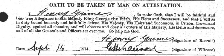 Henry was born on 8 July 1892. His parents are unknown. By 1901, he was a resident of St. Georges Industrial School in Liverpool, where he claimed on his attestation papers to have spent five years in their militia. Industrial schools were created to tackle child vagrancy. Harsh places of strict discipline, they nonetheless got poor, orphaned or homeless children, children whose parents could not control them or were not offering adequate care, off the streets. The schools taught these children trades in hopes of having them employable. Which category Henry fit – vagrant, orphaned or surrendered – is unknown. In July 1905, Henry was sent to Canada, probably because his run at St Georges had concluded. By 1912 he was working as a painter in Ottawa, Ontario, and on 23 November 1912, married Mabel Elsie Fiander, a young woman who had emigrated from Sheffield, England to Canada only four months before. On 26 June 1913, they welcomed a daughter. Perhaps she was born too early, as the poor baby died the next day. There would be no more children for the couple.