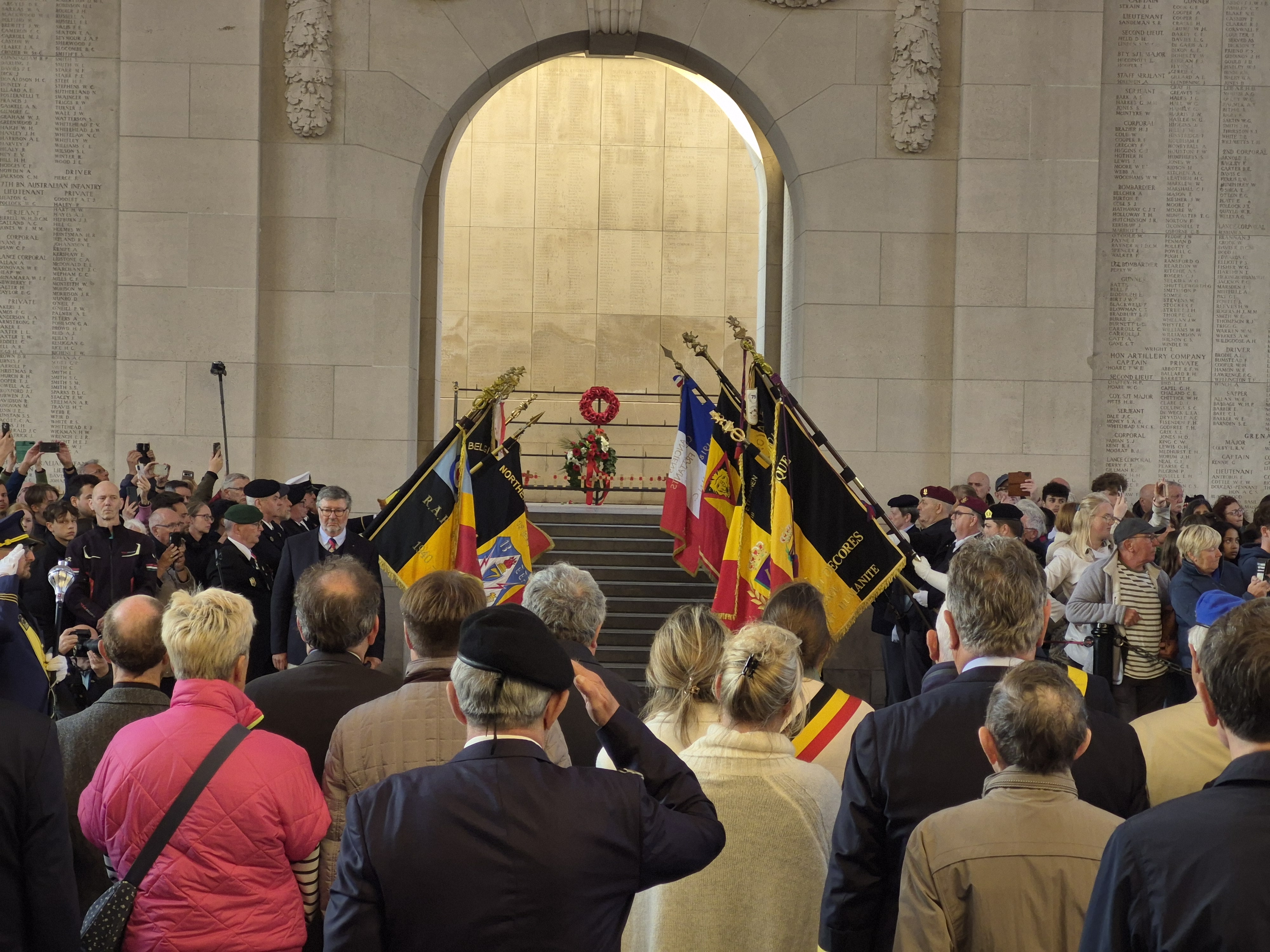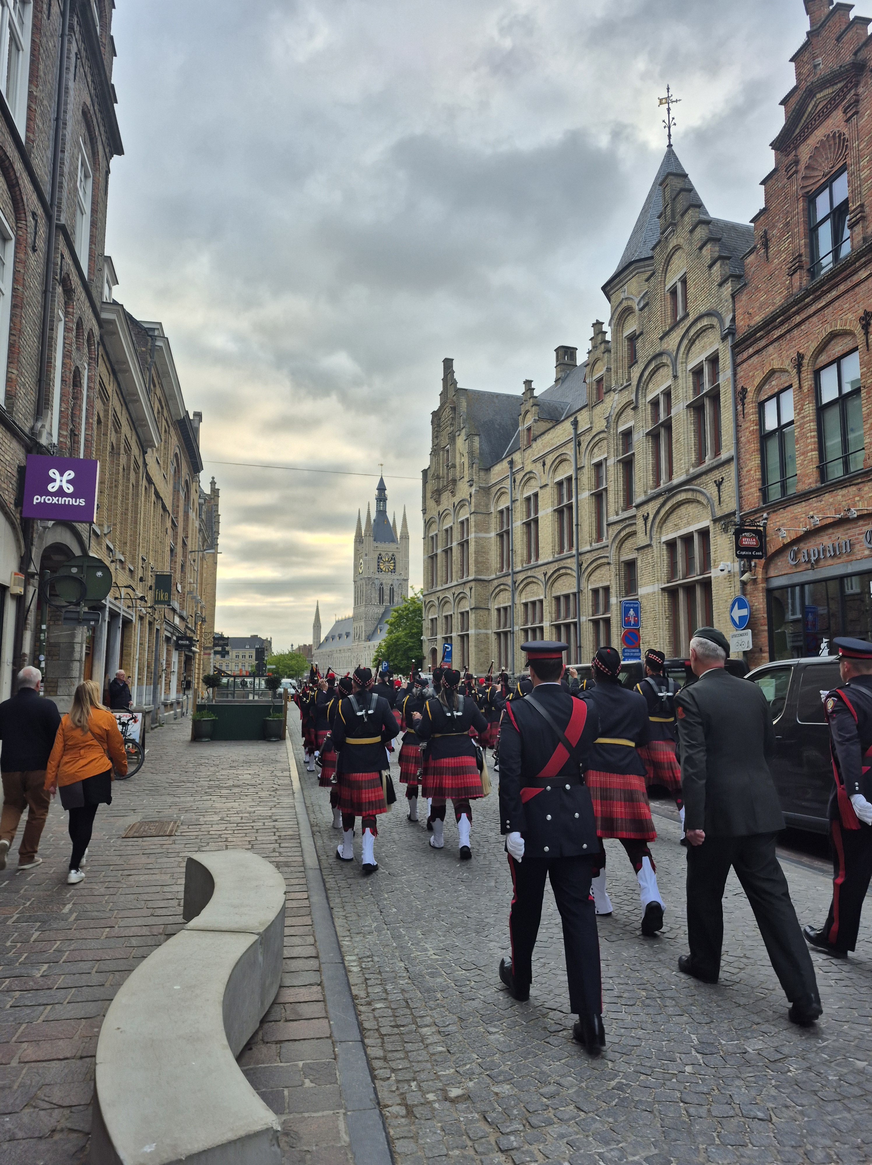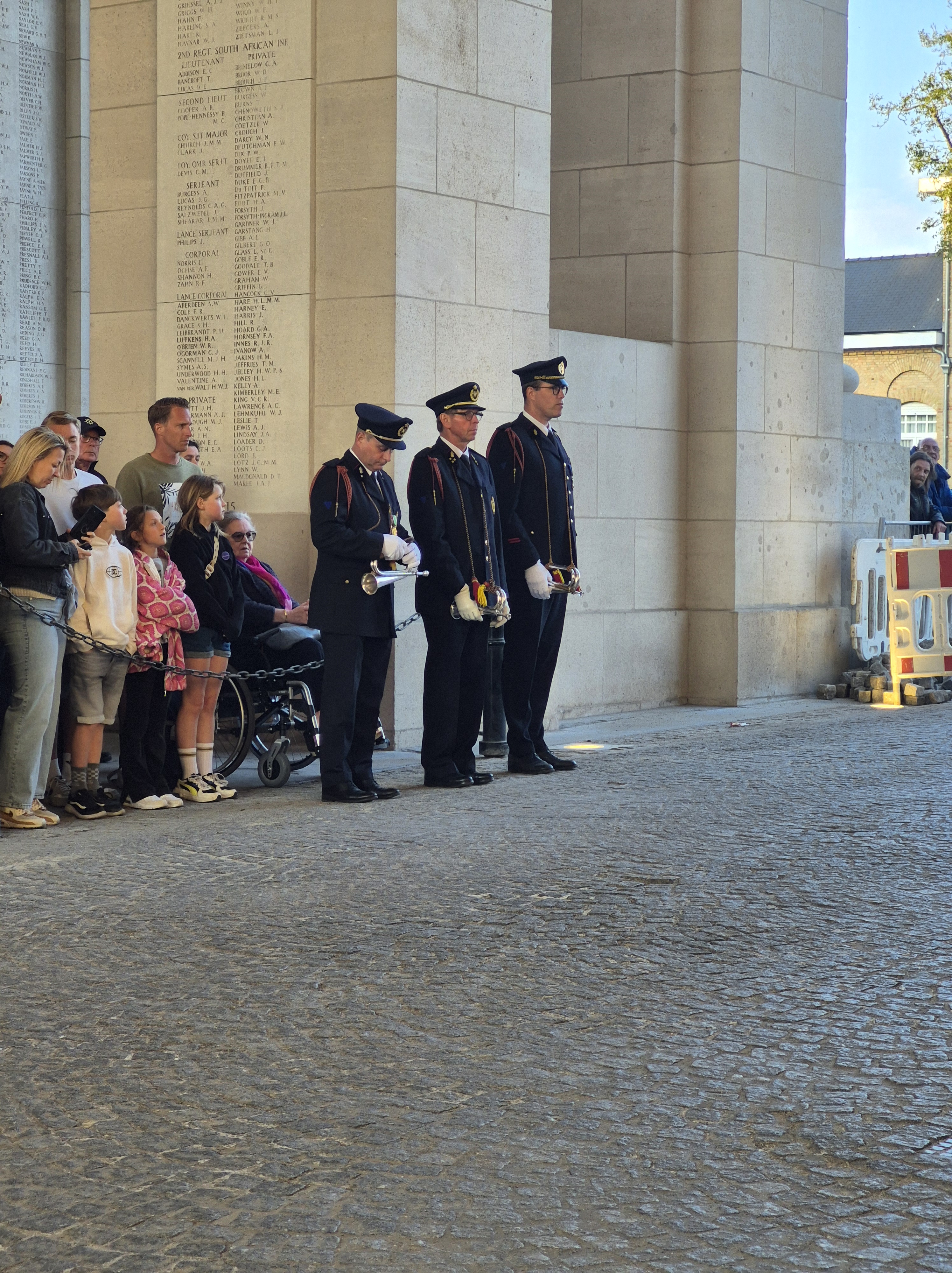 It was a special service at Menin Gate, being V.E. Day, and so the place was crowded with dignitaries and had two bands play, a fitting night for our last in Belgium.