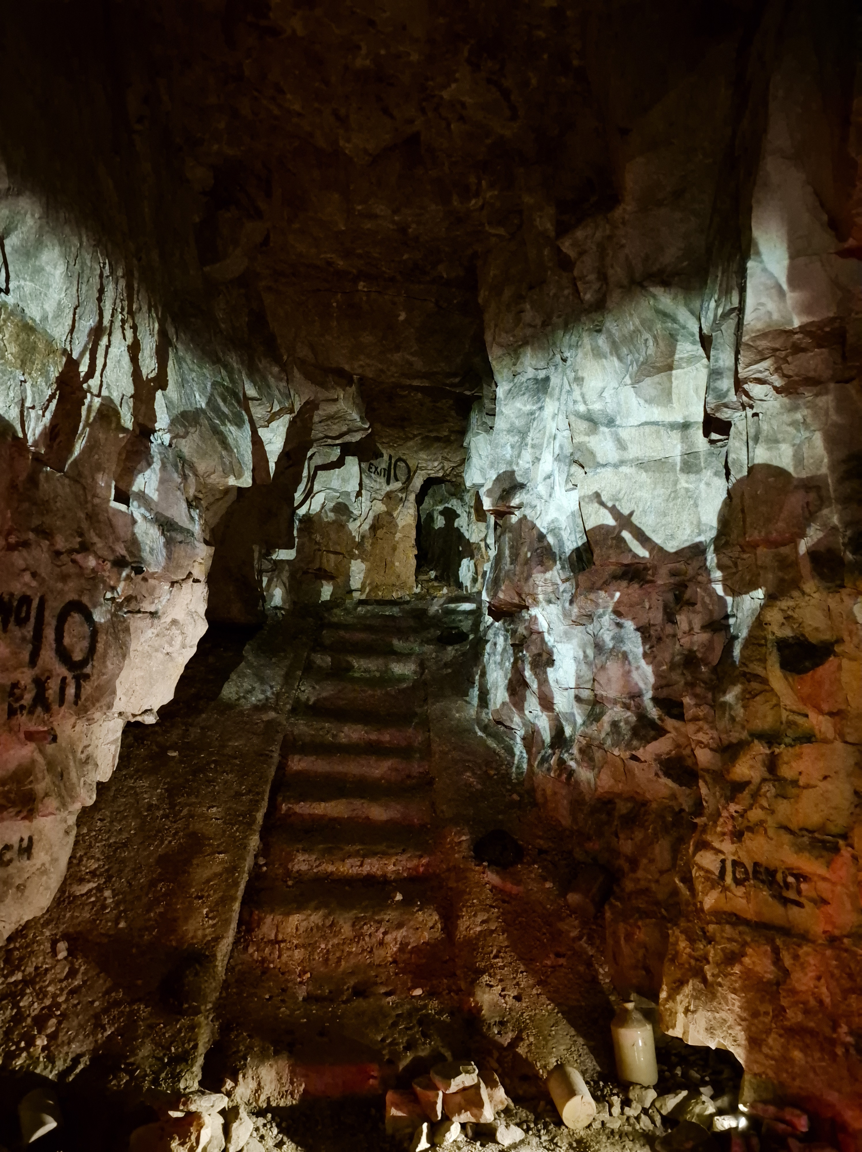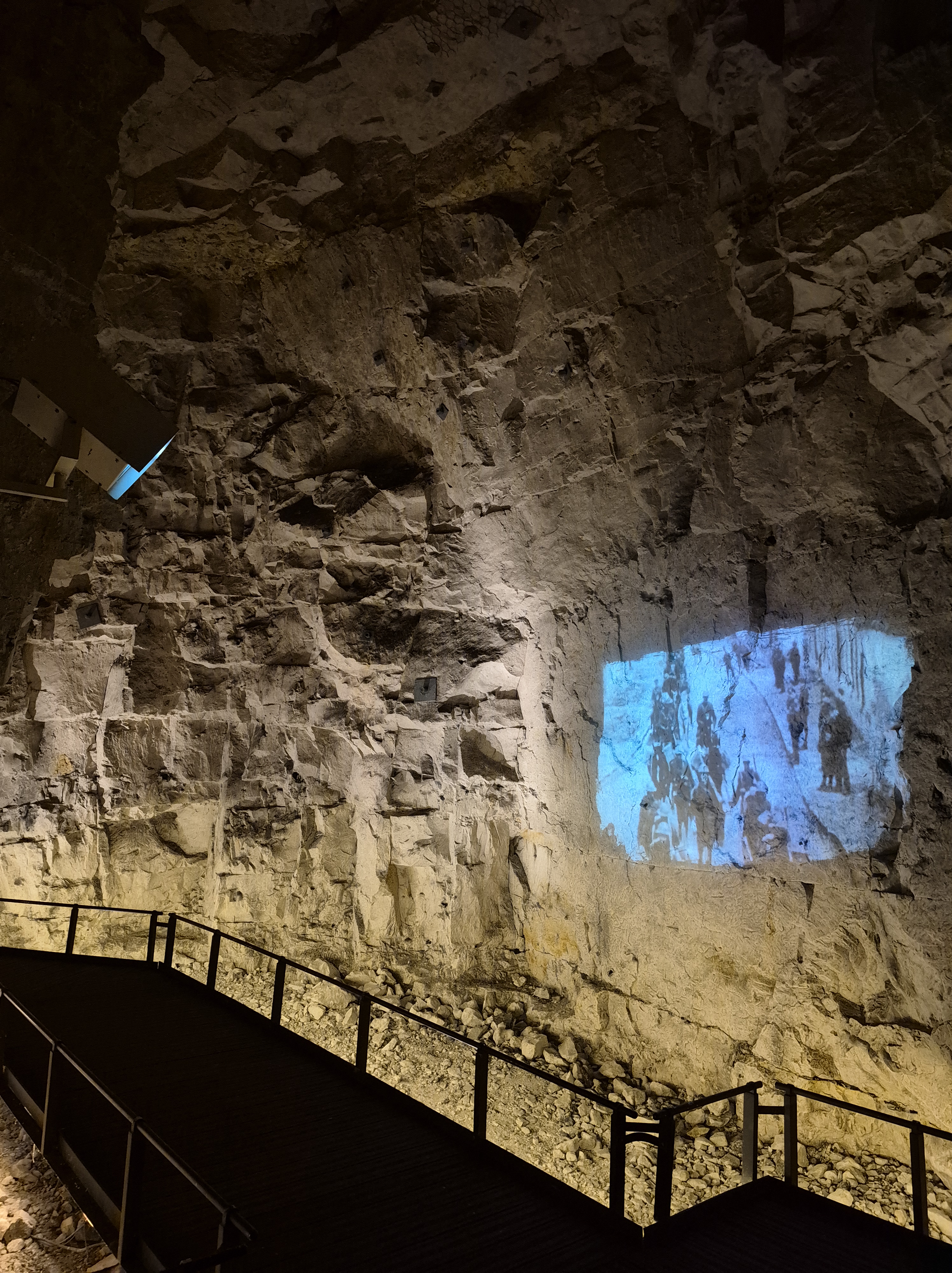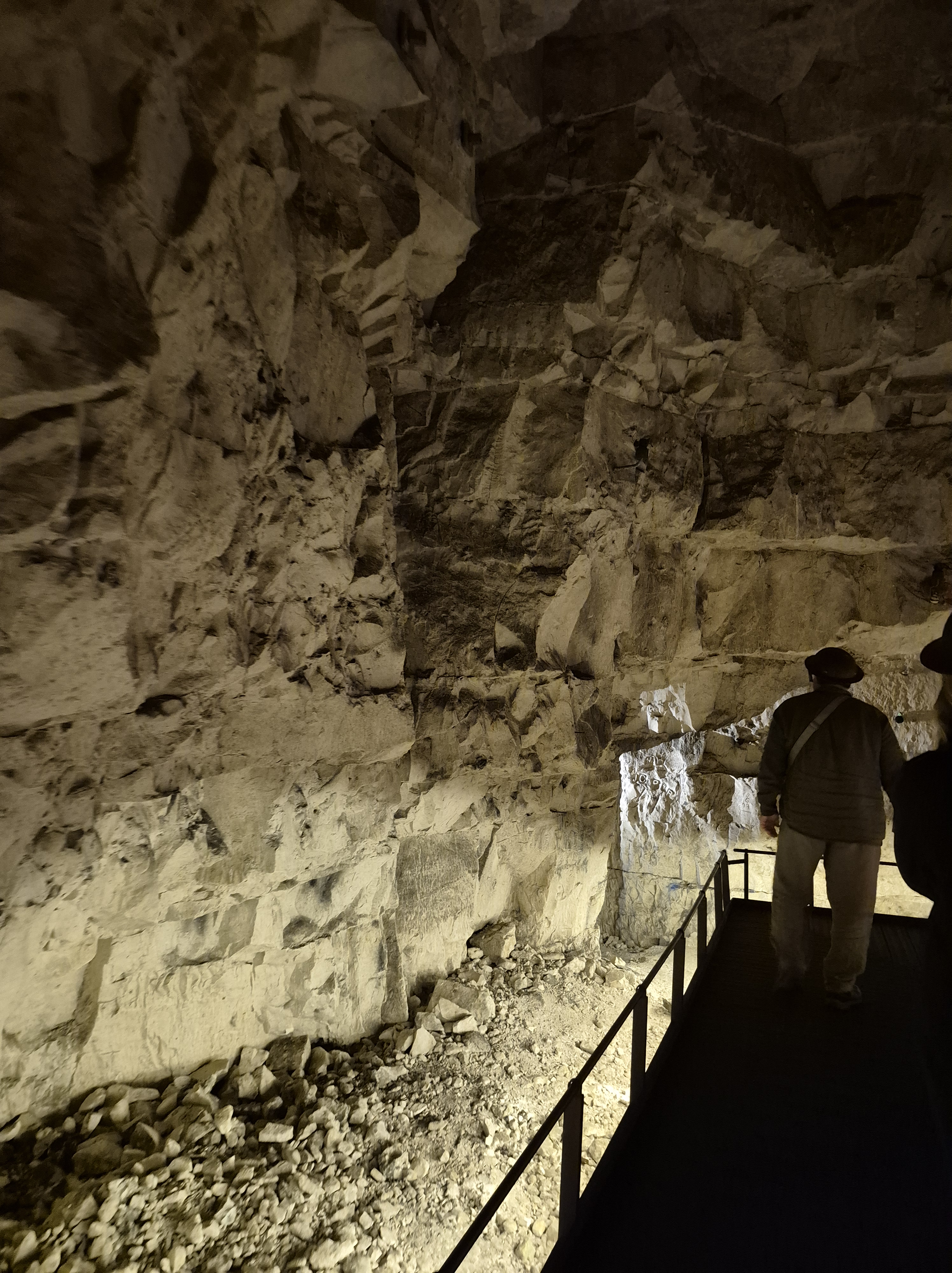 We had planned to visit the Wellington tunnels in Arras, but they were sold out so, knowing we’d be back in the area Wednesday, we bought tickets for then. It was well worth the admission price of €8. Kind of fun to wear a “Brodie” helmet hard hat. The tour was atmospheric, with a guide, videos projected on the walls and background sound track. I was a bit worried about being claustrophobic, but the caverns under there are huge!